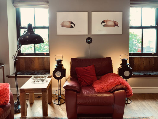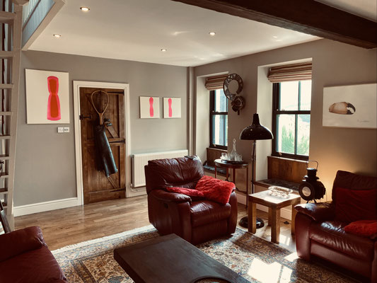 We call it the gallery, because you will see a lot of art in the hallway. Small, but with a fantastic view through the panaroma window is the office. In case you have to work or just count the sheep, this is the right spot.